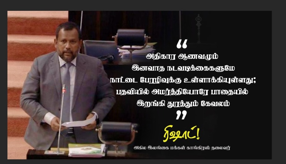 பதவியில் அமர்த்தியோரே பாதையில் இறங்கி துரத்தும் கேவலம்” – மக்கள் காங்கிரஸ் தலைவர் ரிஷாட்!