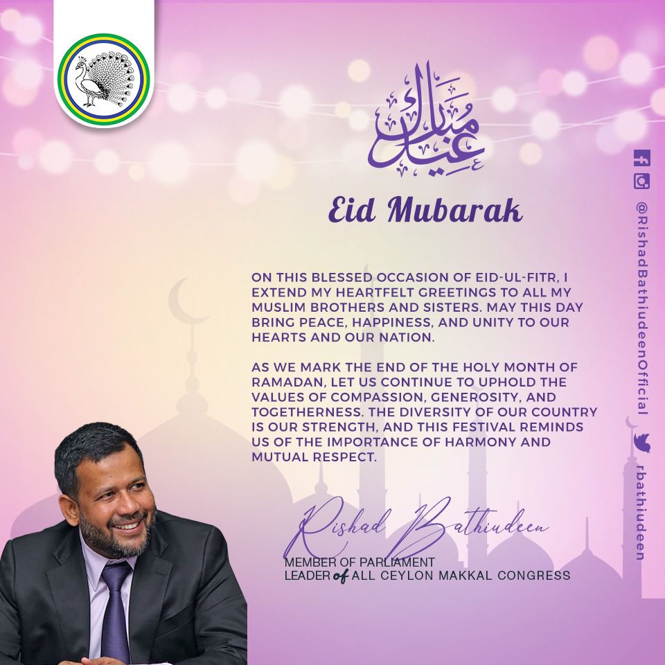 புனித நோன்புப் பெருநாளை முன்னிட்டு அவர் வௌியிட்டுள்ள வாழ்த்துச் செய்தியில் தெரிவித்துள்ளதாவது,