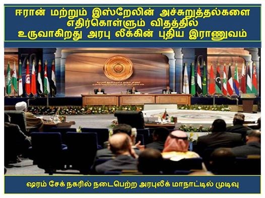 இதனை தொடர்ந்து சில தினங்களுக்கு முன்பு எகிப்தின் ஷரம்சேக் நகரில் நடைபெற்ற அரபுலீக்கின் 26 வது உச்சி மாநாட்டில் அரபு நாடுகளிடையே ஒருங்கிணைந்த இராணுவத்தை உருவாக்குவது என்று கொள்கை அளவில் ஒப்பு கொள்ள பட்டு விரைவில் அதர்கான பணிகள் தொடங்கும் என் அதிகாரபுர்வமாக அறிவிக்க பட்டுள்ளது