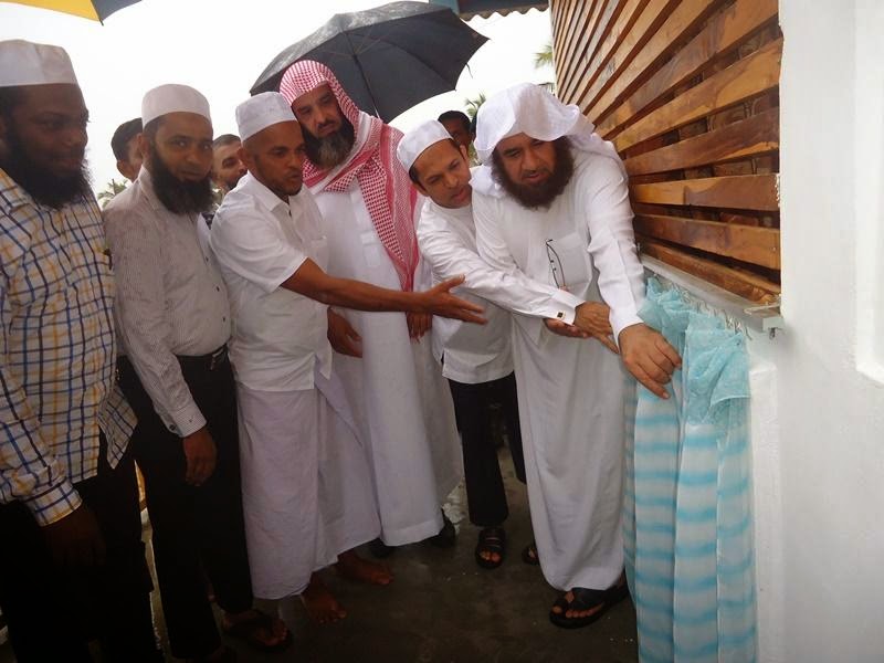 இதன் போது இப் பள்ளிவாயளின் நினைவுக் கல்லை சவூதி அரேபிய அல் கஸீம் பல்கலைக்கழகத்தின் சிரேஷ்ட விரிவுரையாளர் அஷ்ஷெய்க் அபூ ஸூலைமான் அப்துல்லாஹ் ஸாலிஹ் அல் ஹத்லூல், சவூதி அரேபிய சமூக நலன் விரும்பியும், நிதாஉல் கைர் அமைப்பின் பணிப்பாளருமான அஷ்ஷெய்க் அபூ ஸாலிஹ் ஹாலித் அத்தாவூத், மற்றும் ஸ்ரீலங்கா ஹிறா பவுண்டேசன் நிறுவனத்தின் பணிப்பாளரும்,பொருளாதார அபிவிருத்தி பிரதியமைச்சருமான எம்.எல்.ஏ.எம். ஹிஸ்புல்லாஹ் ஆகியோர் திரை நீக்கம் செய்து வைத்தனர்.