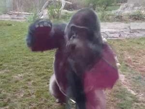 கொரில்லா மீது மிகுந்த ஆர்வம் கொண்ட கெவினின் 7 வயது பெண், கொரில்லாவை அருகில் பார்த்த மகிழ்ச்சியில் கொரில்லா செய்வது போல், தனது மார்பில் இரண்டு கைகளால் அடித்துக் கொண்டுள்ளார். தன்னை கலாய்ப்பதால் கடுப்பான கொரில்லா ஓடி வந்து கண்ணாடி மேல் பாய்ந்தது.