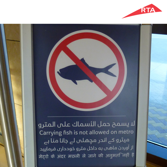 துபாய் மக்கள் அதிகமாக பயணிக்கும் பொதுப் போக்குவரத்து துறையில் துபாய் மெட்ரோ முதல் இடத்தில் உள்ளது. பல பயணிகளின் எண்ணத்தை கருத்தில் கொண்டு துபாய் மெட்ரோவில் மீன் கொண்டு செல்ல தடை விதிக்கப்பட்டுள்ளது.