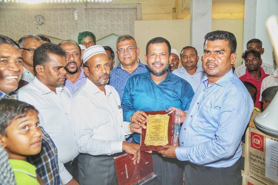 அம்பாறைக்கு விஜயம் செய்த அகில இலங்கை மக்கள் காங்கிரஸ் தலைவர், அமைச்சர் ரிஷாட் பதியுதீன், நற்பிட்டிமுனை ஜும்மா பள்ளிவாசலுக்கான இலத்திரனியல் உபகரணங்களை அன்பளிப்பாக வழங்கி வைத்தார்.