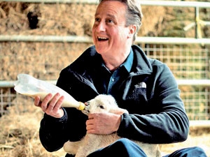 இங்கிலாந்து பிரதமர் டேவிட் கேமரூன் பிராணிகள் மீது ஆர்வம் கொண்டவர். கடந்த ஞாயிற்றுக்கிழமை அவர் வித்தியாசமான முறையில் ஈஸ்டர் பண்டிகையை கொண்டாடினார்.