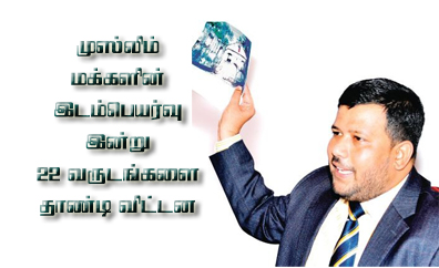 பதில்: வட மாகாணத்தில் மெனிக்பாம் முகாம்களில் மக்கள் இருந்த போது நான் அமைச்சராக இருந்தேன். பல உதவிகளையும் வழங்கி, 25 ஆயிரம் ரூபா உதவித் தொகையும் வழங்கி மீளக் குடியமர்த்தியிருந்தோம். அந்த மக்கள் தமது சொந்தக் காணிகளிலேயே குடியமர்த்தப்பட்டார்கள். இது குறுகிய கால இடப்பெயர்வு என்பதால் அவர்களை மீள் குடியமர்த்துவது சாத்தியமாக அமைந்திருந்தது. ஆனால், முஸ்லிம் மக்களின் இடப்பெயர்வைப் பொறுத்தவரை 22 வருடங்கள் கடந்து விட்டன. இதனால் அவர்களது பிரதேசங்கள் காடுகளாகக் காட்சியளிக்கின்றன. காடுகள் வளர்ந்து 6 அடிக்கு மேல் இருந்தால், அவை சொந்தக் காணிகளாக இருந்தாலும்,வனவள அமைச்சுக்குச் சொந்தமானதாகிவிடும். பல்வேறு நடைமுறைகளின் பின்னர் அதனை அவர்களிடம் மீளப்பெற்றே மக்களிடம் வழங்க முடியும். இது ஒரு சிலரின் பிரச்சினை இல்லை. 25 ஆயிரத்துக்கு மேற்பட்ட மக்களின் காணிகள் இவ்வாறு மீளப்பெறவேண்டியுள்ளன.எனவே, இவ்வாறான நடைமுறைகளின் போதும்,காணிகளைத் துப்புரவு செய்யும்போதும், மக்கள் தமது காணிகளை அடையாளம் காட்டும்போதும் பல்வேறு பிரச்சினைகள் ஏற்படுகின்றன. எனவே, இந்த விடயத்தில் அரசாங்கமும், புதிதாக நியமிக்கப்பட்ட முதலமைச்சரும் முஸ்லிம் மக்களின் மீள் குடியேற்றத்துக்கு ஓர் மாற்றுத் திட்டத்தை மேற்கொள்ள வேண்டும் என்று நான் வேண்டிக் கொள்கின்றேன். அதற்கு எனது பூரண ஒத்துழைப்பை வழங்கவும் நான் தயாராக இருக்கின்றேன்.