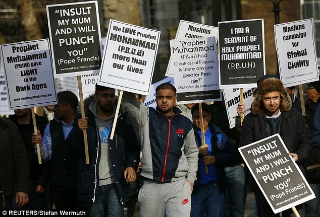 இதனையடுத்து லண்டனில் உள்ள Downing Street பகுதியில் திரண்ட ஆயிரக்கணக்கான இஸ்லாமியர்கள் சார்லி ஹெப்டோ பத்திரிக்கைக்கு எதிராக கோஷங்களை எழுப்பினர்.