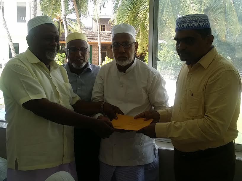 அமைச்சரின் சார்பில் குறித்த கடிதத்தை கலாநிதி ஏ.எம்.ஜெமீல் பள்ளிவாசலின் தலைவர் வை.எம்.ஹனிபாவிடம் கையளித்தார். குறித்த கடிதத்தில் 50 வீடுகளையும் நிர்மானிப்பதற்கான காணி மற்றும் வீடுகள் தேவைப்படுபவர்களது விபரங்கள் கோரப்பட்டுள்ளது. இங்கு கருத்துத்தெரிவித்த வை.எம்.ஹனிபா பள்ளி நிருவாகத்துடன் பேசி அதற்கான தகவல்களைப் பெற்றுத்தருவதாக வாக்குறுதியளித்தார்.