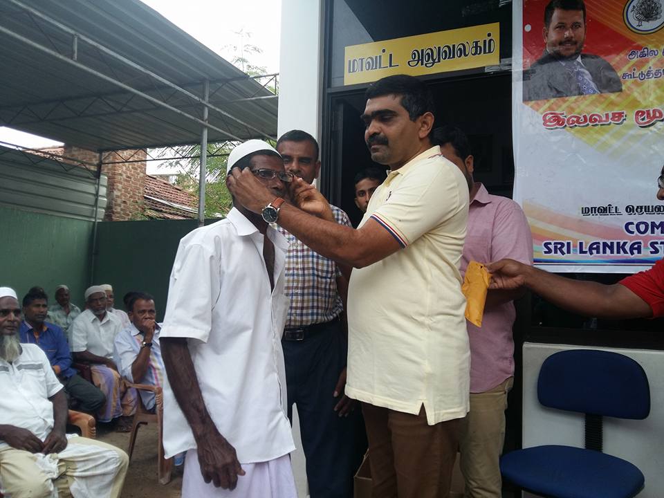 அகில இலங்கை மக்கள் காங்கிரசின் கெளரவ தேசியத் தலைவர் அமைச்சர் ரிஷாட் அவர்களின் ஆலோசனைக்கு அமைவாக, அதன் பிரதித் தலைவரும் முன்னாள் மாகாண சபை உறுப்பினரும் இலங்கை அரச வர்த்தக கூட்டுத்தாபனத்தின் தலைவருமாகிய கொளரவ ஏ.எம்.ஜெமீல் அவர்களின் வறிய மக்களுக்கான 1000ம் இலவச மூக்குக் கண்ணாடிகள் என்னும் திட்டத்திற்கமைவாக, தற்போது19.08.2017 சனிக்கிழமை இரண்டாவது கட்டமாக சாய்ந்தமருது மக்களுக்காக மேலும் 250 மூக்குக் கண்ணாடிகளை வழங்கி வைக்கும் நிகழ்வு இடம்பெற்றது.
