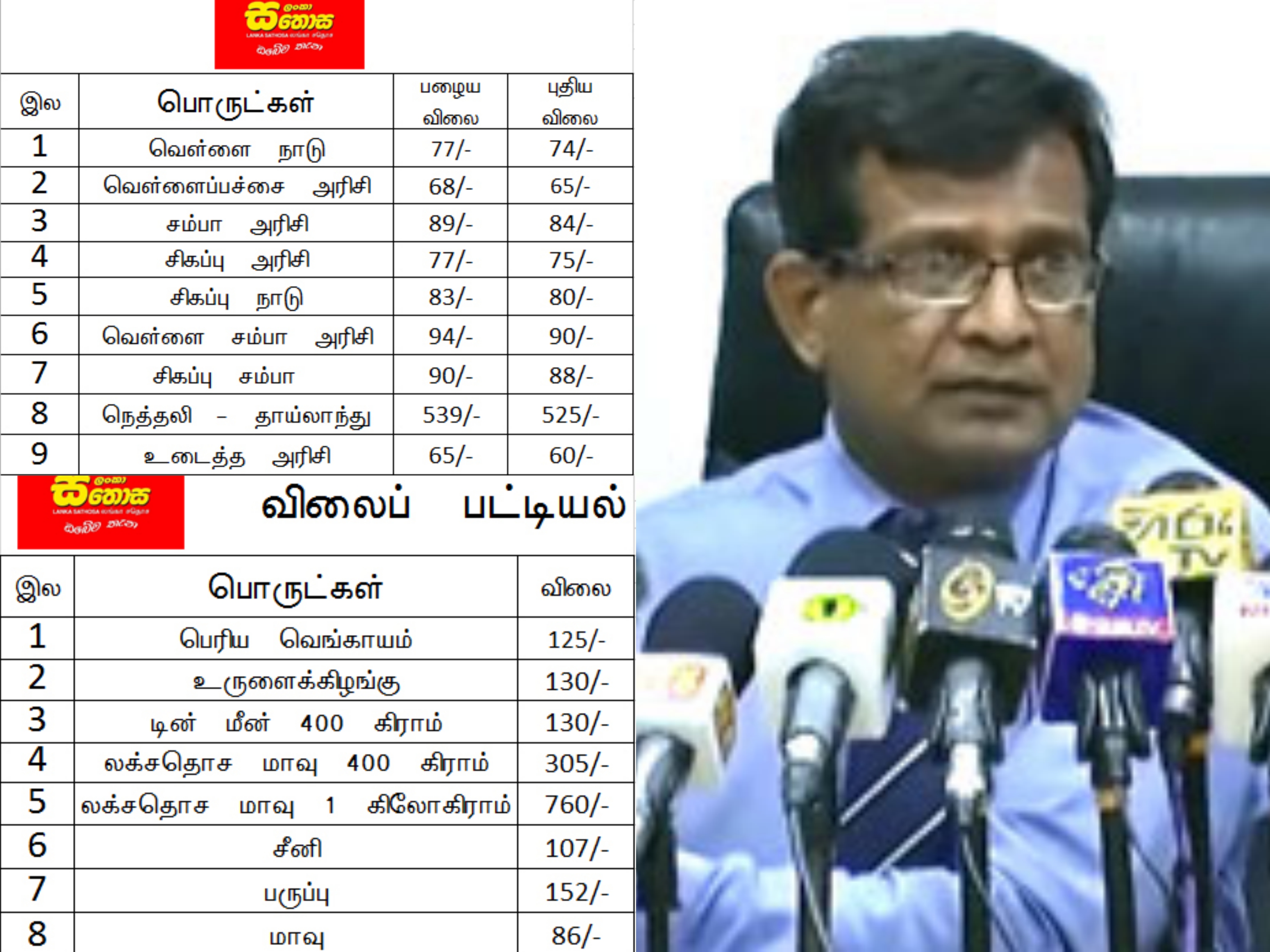அரிசி உட்பட 9 அத்தியாவசியப் பொருட்களின் விலைகளை சதொச விற்பனை நிலையங்களில் இயன்றளவு குறைத்து விற்பனை செய்வதற்கு  ஜனாதிபதி தலைமையிலான வாழ்க்கைச் செலவு உப குழு மேற்கொண்ட முடிவுக்கிணங்க  அப்பொருட்களுக்கான விலைகள் குறைக்கப்பட்டு இன்று நள்ளிரவு (28) முதல் புதிய விலைகள் அமுலுக்கு  வருவதாக சதொச நிறுவனத்தின் தலைவர் டி.எம்.கே.பி. தென்னக்கோன் தெரிவித்தார்.