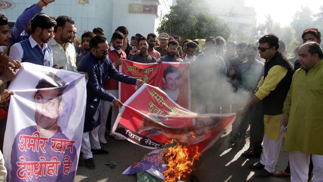 விரைவில், திரைக்கு வரவிருக்கும் டங்கல் படத்தின் படப்பிடிப்பிற்காக பஞ்சாப் சென்றுள்ள அமீர் கான், லூதியானா நகரில் உள்ள ராடிசன் ப்ளூ ஓட்டலில் தங்கியுள்ள நிலையில், நேற்று அந்த ஓட்டலை முற்றுகையிட்ட சிவசேனா அமைப்பினர் அமீர் கானை கொச்சையான வார்த்தைகளில் திட்டி, அவரது புகைப்படத்தைக் கொளுத்தி ஆர்ப்பாட்டத்தில் ஈடுபட்டனர். இந்த ஆர்ப்பாட்டத்திற்கு தலைமை தாங்கிய பஞ்சாப் மாநில சிவசேனா தலைவர் ராஜீன் தன்டன், அமீர் கானை அறைபவர்களுக்கு 1 லட்சம் ரூபாய் பரிசு தருவதாக அறிவித்துள்ளார்.