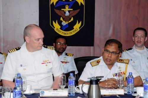 அமெரிக்க கடற்படையின் ஏழாவது கப்பற் படையணியின் யுஎஸ்எஸ் புளூ ரிட்ஜ் கட்டளைக் கப்பல் கடந்த மாதம் இலங்கைக்கு பயணம் மேற்கொண்டிருந்தது.இதன் போது, அமெரிக்க கடற்படையின் ஏழாவது கப்பற்படையணியின் அதிகாரிகளுக்கும், இலங்கை கடற்படை மற்றும் விமானப்படை அதிகாரிகளுக்கும் இடையில் பேச்சுவார்த்தை இடம்பெற்றது.இதில் விமானப்படை மேற்ரும் கடற்படையைச் சேர்ந்த 16 அதிகாரிகள் பங்கேற்றிருந்தனர்.