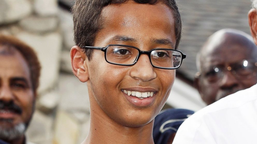 அகமது முகமது  சொந்தமாகச் செய்து, வகுப்புக்கு எடுத்து வந்த கடிகாரத்தை ஆசிரியர்கள் வெடிகுண்டு என தவறாகக் கருதியால் அவர் கைது செய்யப்பட்டார்.