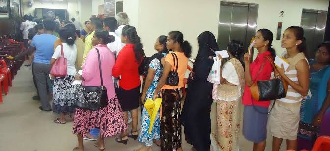 இந்தப்பெண்கள், வரிசையில் மணித்தியாலயக்ககணக்கில் சிலர் காத்துநிற்கின்றனர். சிலர் கைக்குழந்தைகளுடன் அபாயர் அணிந்த பெண்கள், பேஸ்கவர் அணிந்த பெண்கள், மற்றும் கொழும்பில் முடுக்கு வீடுகளில் வாழும் தமிழ்ப் பெண்களும் இவ்வாரே சீரழிகின்றனர். அவர்கள் முண்டியடித்து சண்டையில் ஈடுபடுகின்றனர். சிலர் மயக்கமுறுகின்றனர். அவர்களது கைகளில் ஆகக் குறைந்தது ஒரு மனுவைக் கூட எழுதத் தெரியாமல் அங்கு இங்குமாக அலைகின்றனர்.