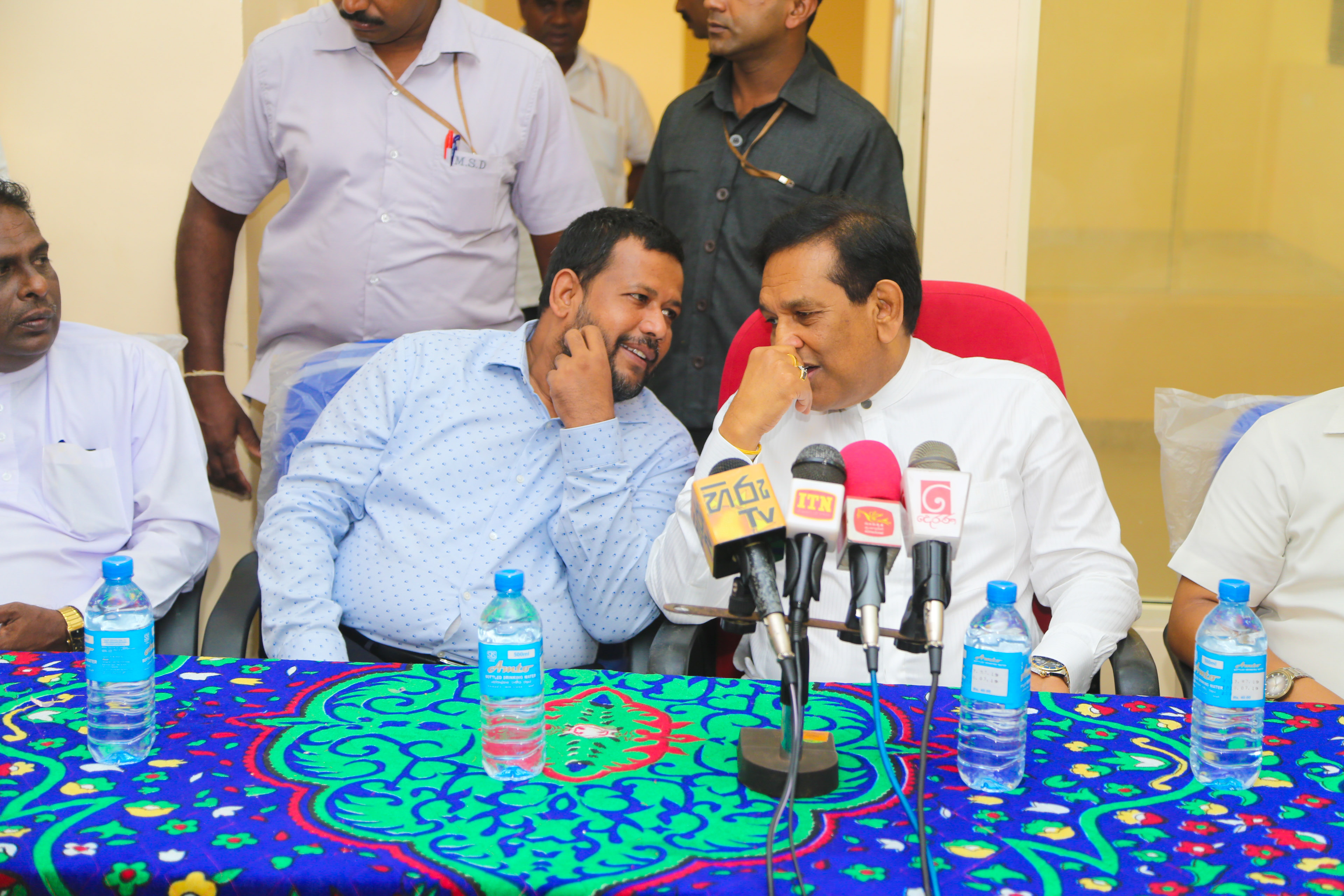 அமைச்சர் ராஜிதவின் வருகை எனக்கு பெரும் மகிழ்ச்சி தருகின்றது. வில்பத்து பிரச்சினையில் எனக்கும் நான் சார்ந்த சமூகத்திற்கும் ஆதரவாக எந்தவிதமான பயமும் இன்றி துணிந்து குரல் கொடுத்தவர். வில்பத்து பிரதேசத்தையும் இனவாதிகளால் நீதிமனற கட்டளையைப் பெற்று புனரமைக்கப்படாமல் இருக்கும் இலவங்குளம் பாதையிலும் என்றோ ஒரு நாள் இவரை அழைத்துச் செல்ல வேண்டுமென நான் நினைத்தேன். இன்று அது கைகூடியுள்ளது என்று அமைச்சர் ரிஷாட் தெரிவித்த போது, ‘எனது ஆசையும் இன்று நிறைவேறுவது மகிழ்ச்சி தருகின்றது’ என்று அமைச்சர் ராஜித தெரிவித்தார்.