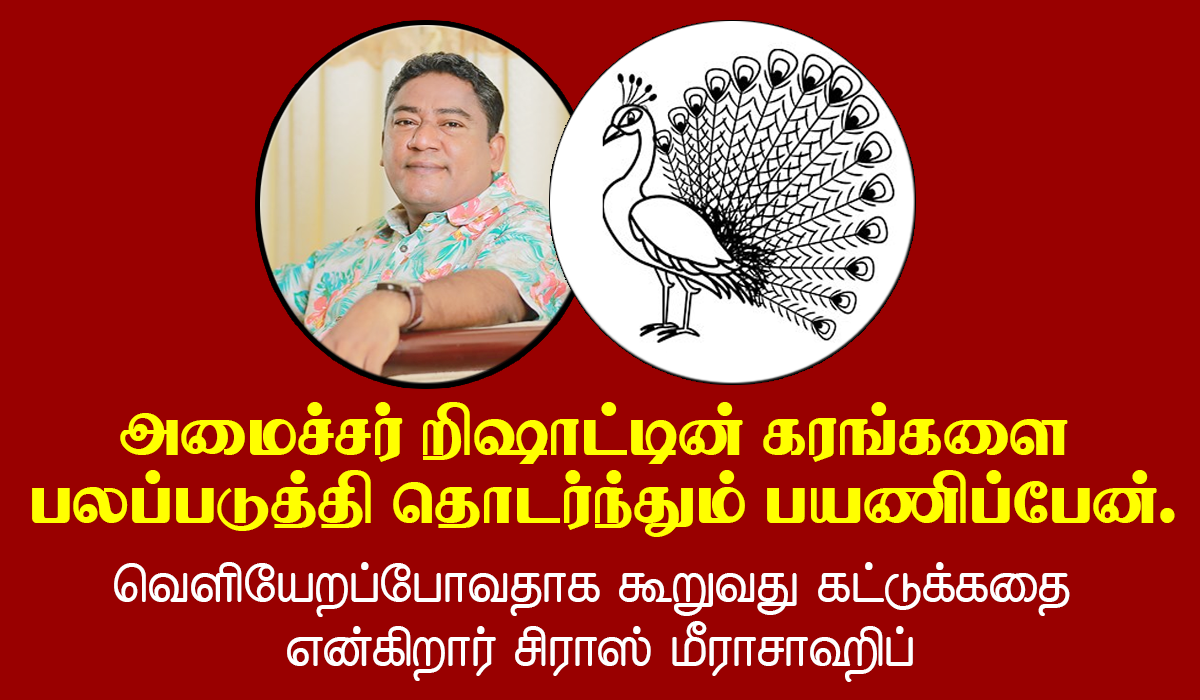 “கட்சியின் உயர்பீடத்தில் நான் ஒரு அங்கத்தவன் . கட்சி நடவடிக்கையில் தலைவருடன் இணைந்து பணியாற்றிவருபவன்.எனவே வீணாக என்னைப்பற்றி விமர்சித்து உங்கள் நேரகாலத்தை நாசமாக்காதீர்கள் நான் இந்த கட்சியிலேயே தொடர்ந்தும் பயணிப்பேன். அதுமாத்திரமின்றி கடந்த காலங்களில் நாட்டில் இடம்பெற்ற சம்பவங்களின் பின்னர் கட்சி தலைவர் மீது அபாண்டமான பழிசுமத்தப்பட்டபோது அது பொய்யானது என நிரூபிப்பதில் தலைவருக்கு பக்கபலமாக இருந்தேன் இவ்வாறு சிராஸ் மீராசாஹிப் தெரிவித்தார்.
