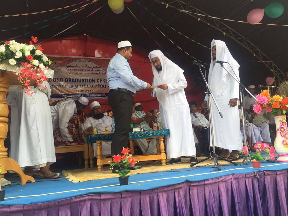 அகில இலங்கை மக்கள் காங்கிரசின் தலைவரும், கைத்தொழில், வர்த்தக அமைச்சருமான றிசாத் பதியுதீன் பிரதம அதிதியாகக் கலந்துகொண்டு விழாவினை சிறப்பித்தார். இந்நிகழ்வில், புத்தளம் மாவட்ட பா. உ நவவி, திருகோணமலை மாவட்ட பா.உ அப்துல்லா மஹ்ரூப், ஜம்மியதுல் உலமாத் தலைவர் ரிஸ்வி முப்தி, வட மேல் மாகாண சபை உறுப்பினர் தாஹிர், வடமேல் மாகாண சபை முன்னாள் உறுப்பினர் எஹியா, ஜாமிய்யா நளீமிய்யா பணிப்பாளர் சபை உறுப்பினரும், விரிவுரையாளருமான Dr. ஏ.சி.அகார் முஹம்மது, மற்றும் காஸிமிய்யா அரபுக்கல்லூரியின் அதிபர் அப்துல்லா ஹஸரத், உட்பட பலர் பங்கேற்றமை குறிப்பிடத்தக்கது.