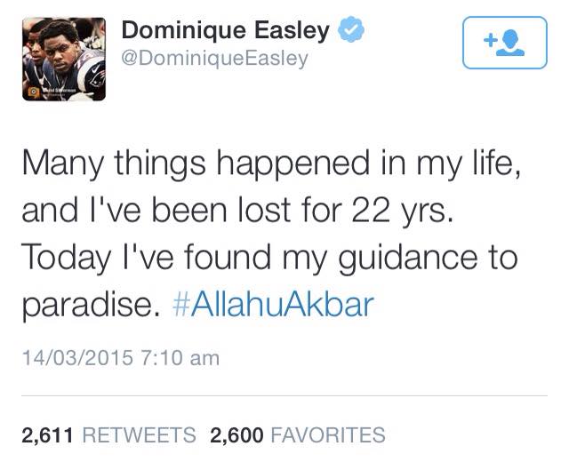 அமெரிக்காவின்  பிரபல விளையாட்டு வீரர் டொமினிக் எஸ்லே சென்ற வாரம் தனது வாழ்வியலாக இஸ்லாத்தை ஏற்றுக் கொண்டுள்ளார்.