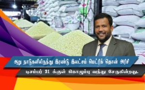 இறக்குமதி செய்ய உத்தேசிக்கப்பட்டுள்ள இரண்டு இலட்சம் மெட்ரிக் தொன் அரிசியில், ஒரு இலட்சம் மெட்ரிக் தொன் நவம்பர் 31ஆம் திகதிக்குள்ளும், எஞ்சிய ஒரு இலட்சத்தை டிசம்பர் 31 ஆம் திகதிக்குள்ளாகவும் இறக்குமதி செய்ய நடவடிக்கை எடுக்கப்படுமென அந்த அதிகாரி நம்பிக்கை தெரிவித்தார்.