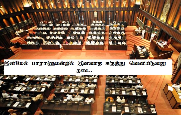 நாடாளுமன்றில் இனவாத கருத்துக்களை வெளியிடத் தடை விதிக்கப்பட்டுள்ளது.