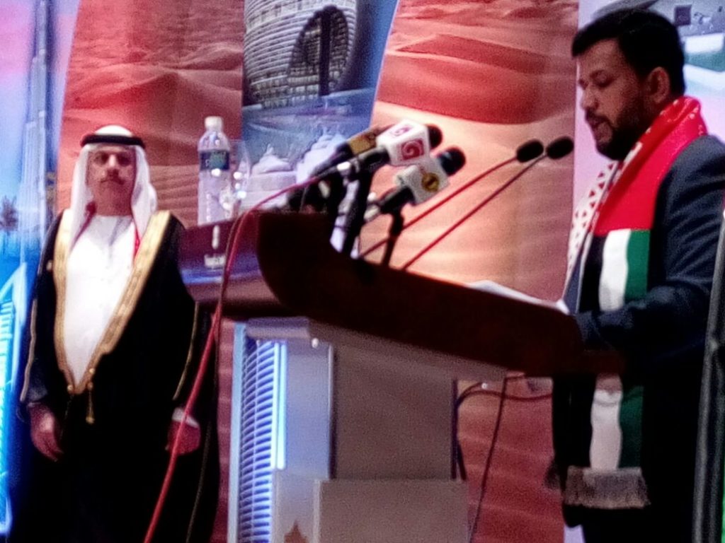 இலங்கையும், ஐக்கிய அரபு அமீரகமும் 1979ம் ஆண்டு தொடக்கம் இராஜதந்திர உறவுகளை பேணிவருகின்றது. அரபு அமீரகத்தில் 122,000 இலங்கையர்கள் வாழ்வதோடு, அவர்கள் அங்கு தொழில் புரிந்து வருகின்றனர். எமது நாட்டவருக்கு தொழில்வாய்ப்பை வழங்கி அவர்களுடைய நலன்களைப் பேணிவரும் ஐக்கிய அரபு அமீரகத்திற்கு இலங்கையர் சார்பில் எனது நன்றிகளையும், பாராட்டுகளையும் தெரிவித்துகொள்கின்றேன்’ என்று கைத்தொழில் மற்றும் வர்த்தக அமைச்சர் ரிஷாட் பதியுதீன் இந்த நிகழ்வில் உரையாற்றும் போது குறிப்பிட்டார்.