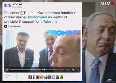 நெதர்லாந்து பாராளுமன்ற உறுப்பினர்கள் நெதன்யாஹுவுக்கு கை குலுக்கி வரவேற்றனர். அப்போது ஒரு பாராளுமன்ற உறுப்பினர் கை குலுக்க மறுத்துவிட்டார்.