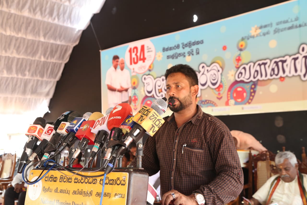 ‘’இன்று நாங்கள் ஒரு வீட்டை கட்டுவதற்காக எத்தனையோ இடங்களில் எத்தனையோ நாட்களாக தவமிருக்கின்றோம்.இன்று எங்களுடைய மண்ணுக்கு அழகான (50)ஐம்பது வீடுகளை கட்டி,ஐம்பது வீடுகளுக்கும் அமைச்சர் சஜீத்தின் பாதங்கள் சென்று ஒவ்வொரு வீடு வீடாகப் பார்வையிட்டு எங்களிடம் ஒப்படைத்திருக்கின்றார்கள்.எங்களின் மக்களுடைய ஆசைகளை எவ்வாறு தீர்த்து வைக்கலாமென்று நாங்கள் எண்ணிக்கொண்டிருக்கும் வேளையில்தான் அவர்களது உள்ளங்களை புரிந்துகொண்டு இன்று வருகை தந்திருக்கின்ற அன்புக்குரிய சஜீத் பிரேமதாச, தன் தந்தையின் எண்ணக்கருவாக அவருடைய மனதில் தோன்றிய இத்திட்டமானது இலங்கையில் இருக்கின்ற வீடில்லாத அனைத்து மக்களுக்கும் வீடு சென்றடைய வேண்டுமென்ற கருவைக் கொண்டதே.