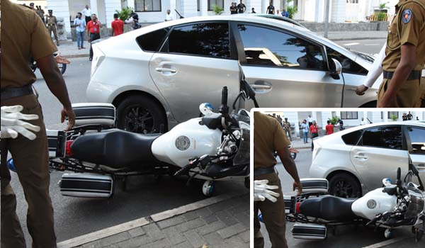 போக்குவரத்து பொலிஸ் அதிகாரிகள் சென்ற மோட்டார் சைக்கிள் ஒன்று பிரதி பொலிஸ் அத்தியட்சகரின் மனைவி செலுத்தி வந்த காருடன் மோதி விபத்துக்குள்ளான சம்பவம் நேற்று கொழும்பு பிலிப் குணவர்தன பகுதியில் இடம்பெற்றுள்ளது.