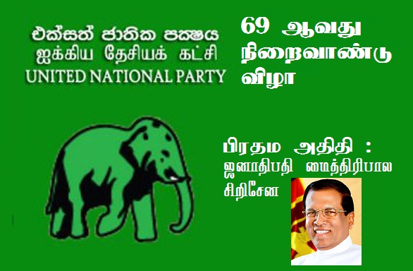 ஐக்கிய தேசியக் கட்சியின் 69 ஆவது நிறைவாண்டு விழா நாளை ஞாயிற்றுக்கிழமை கட்சியின் தலைமையகமான சிறிகொத்தாவில் நடைபெறவுள்ளது. இந்த நிகழ்விற்கு ஜனாதிபதி மைத்திரிபால சிறிசேன பிரதம அதிதியாக வருகை தரவுள்ளார்.