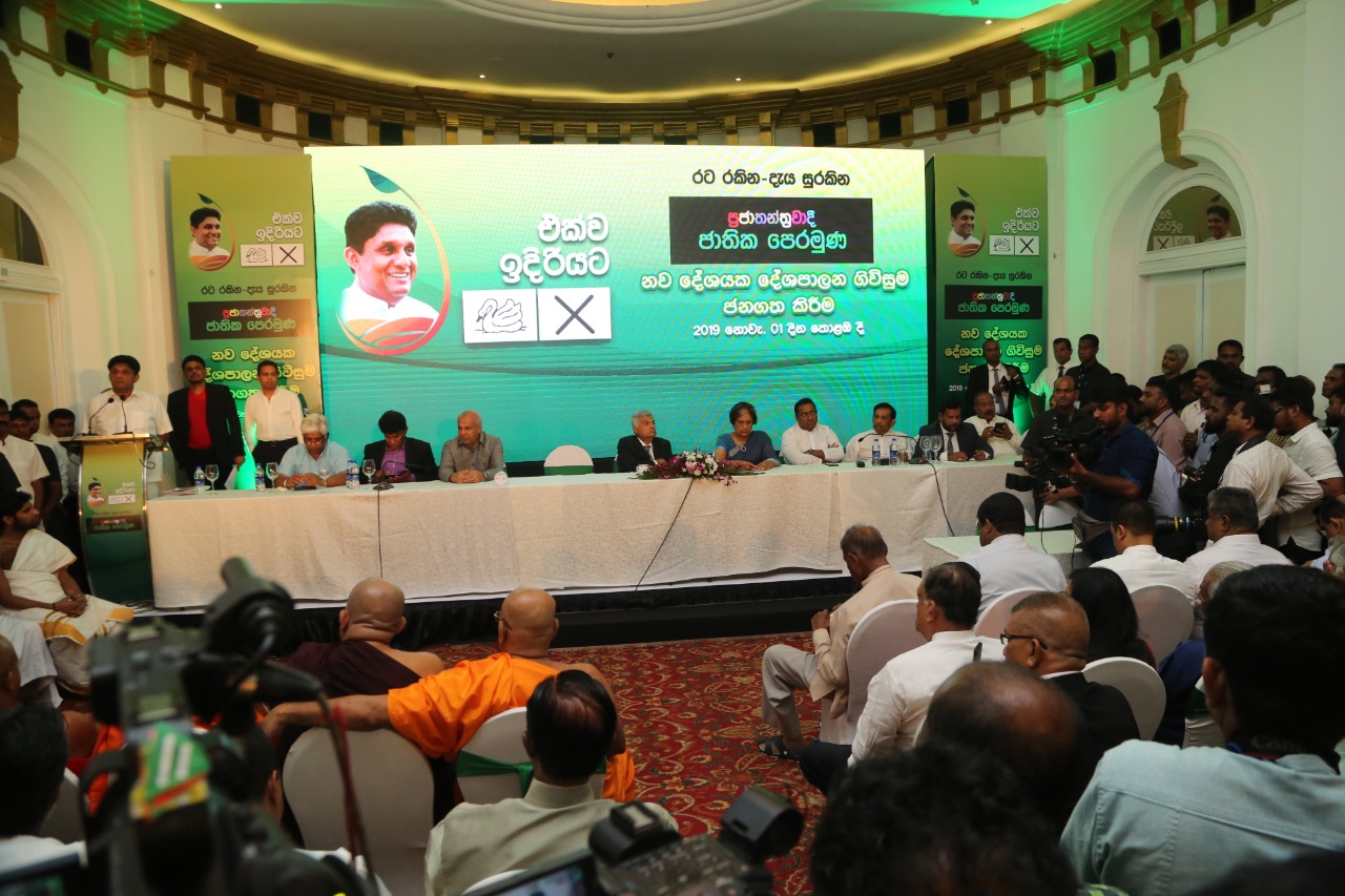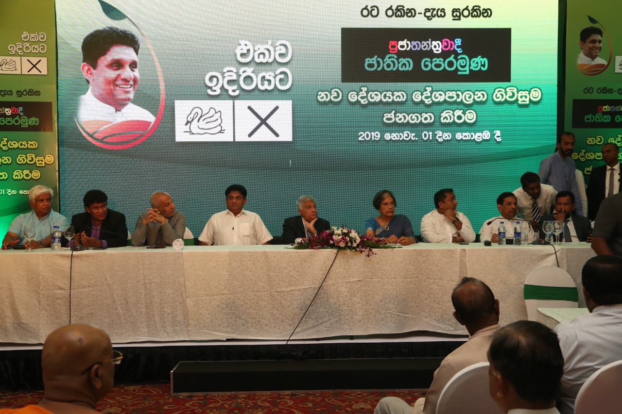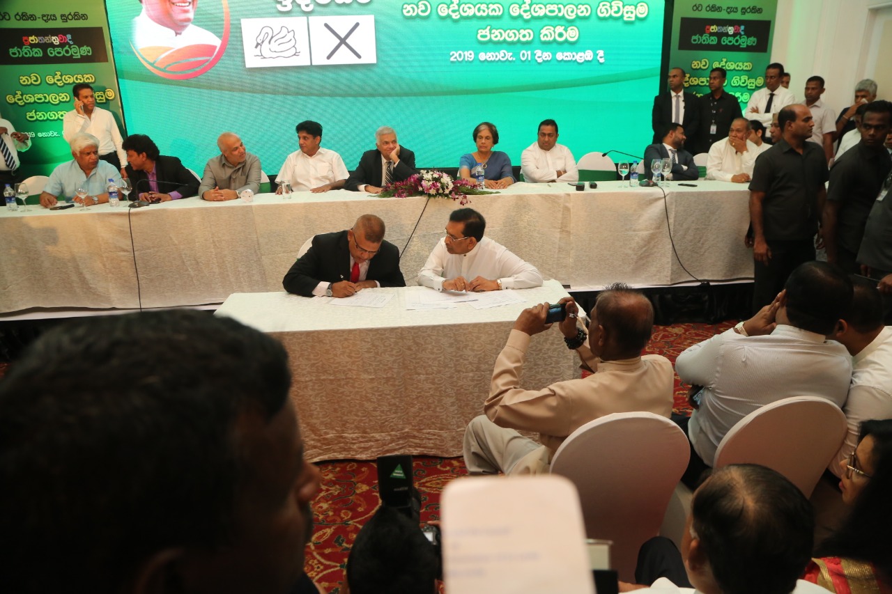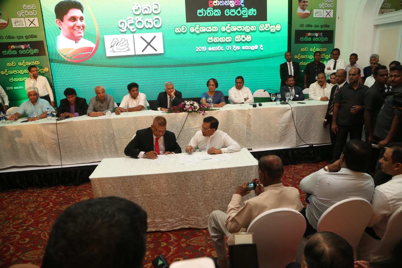 புதிய ஜனநாயக முன்னணியின் ஜனாதிபதி வேட்பாளர் சஜித் பிரேமதாச மற்றும் பிரதமர் ரணில் விக்ரமசிங்க ஆகியோர் தலைமையிலேயே கூட்டணிக்கான உடன்படிக்கை கைச்சாத்திடப்பட்டுள்ளது.