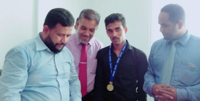 இன் நிகழ்வில் கிழக்கு மாகாண ரீதியில் 5000 மீட்டர் ஓட்ட போட்டியில் முதல் இடம் பெற்ற கல்முனை அல்/பஹ்ரியா மாக வித்தியாலய மாணவன் முகம்மட் அல் அஸ்ரால்ளுக்கு கைத்தொழில் வர்த்தக அமைச்சரும் அகில இலங்கை மக்கள் காங்கிரஸின் தேசிய தலைவருமான றிஷாட் பதீயுதின் பாராட்டியதுடன் இவருடைய எதிர் கால முயற்சிக்கு தேவையான அனைத்து உதவிகளையும் மேற்கோள்வதாக உறுதி அளித்தார்.