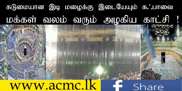 இடியுடன் கூடிய மழைக்கிடையேயும் இறைஇல்லத்தை வலம் வரும் தவாப் என்ற அமலை மக்கள் தங்கு தடையின்றி செய்தனர். மழையில் நனைந்த நிலையில் உள்ள புனித ஆலயத்தின் தோற்றத்தையும் இடிமழைக்கிடையே தயங்காமல் மக்கள் தவாப் செய்வதையும் தான் படம் விளக்ககிறது.