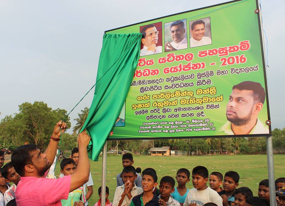 அநுராதபுரம் மாவட்ட பாராளுமன்ற உறுப்பினர் அல்ஹாஜ் இஸ்ஹாக் ரஹுமான் அவர்களின் வேண்டுகோலிற்கு அமைவாக விளையாட்டுத்துறை அமைச்சின் மூலம் நிதி ஒதிக்கீடு செய்யப்பட்ட அ/ கனந்தரா கட்டுக்கெலியாவ மு.ம. வித்தியாலய மைதானத்தின் அபிவிருத்தி பணிகளை ஆரம்பிக்கும்போது.