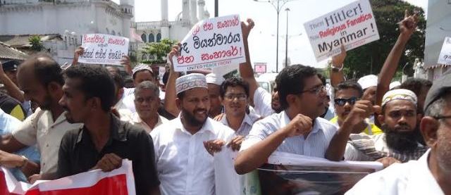 அமைச்சர் றிஷாத் பதியுதீன், மேல்மாகாண சபை உறுப்பிணர்கள் முஜிபு ரஹ்மான், பைருஸ் ஹாஜி, தேசிய ஜக்கிய முன்னனியின் தலைவர் அசாத் சாலி ஆகியேர்ர் ஊர்வலமாகச் சென்று தூதுவரிடம் கண்டன அறிக்கையும் அப்பாவி மக்களை கொண்று குவிப்பதையும் உடனடி நிறுத்துமாறும் பர்மா அரசுக்கு அறிவிக்கும் படி கண்டன அறிக்கையை சமர்ப்பித்தனர்.