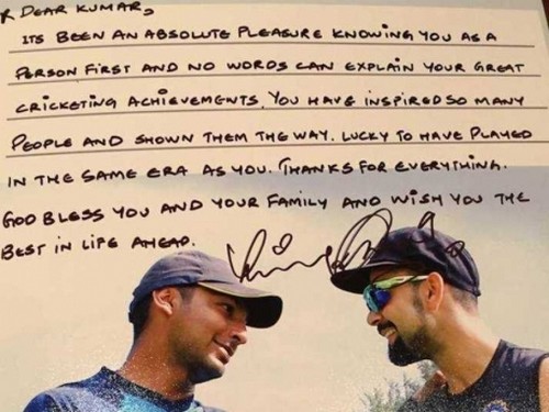 சங்ககாரா விடை பெறுவது குறித்து விராட் கோலி ஒரு கடிதம் எழுதியுள்ளார்.