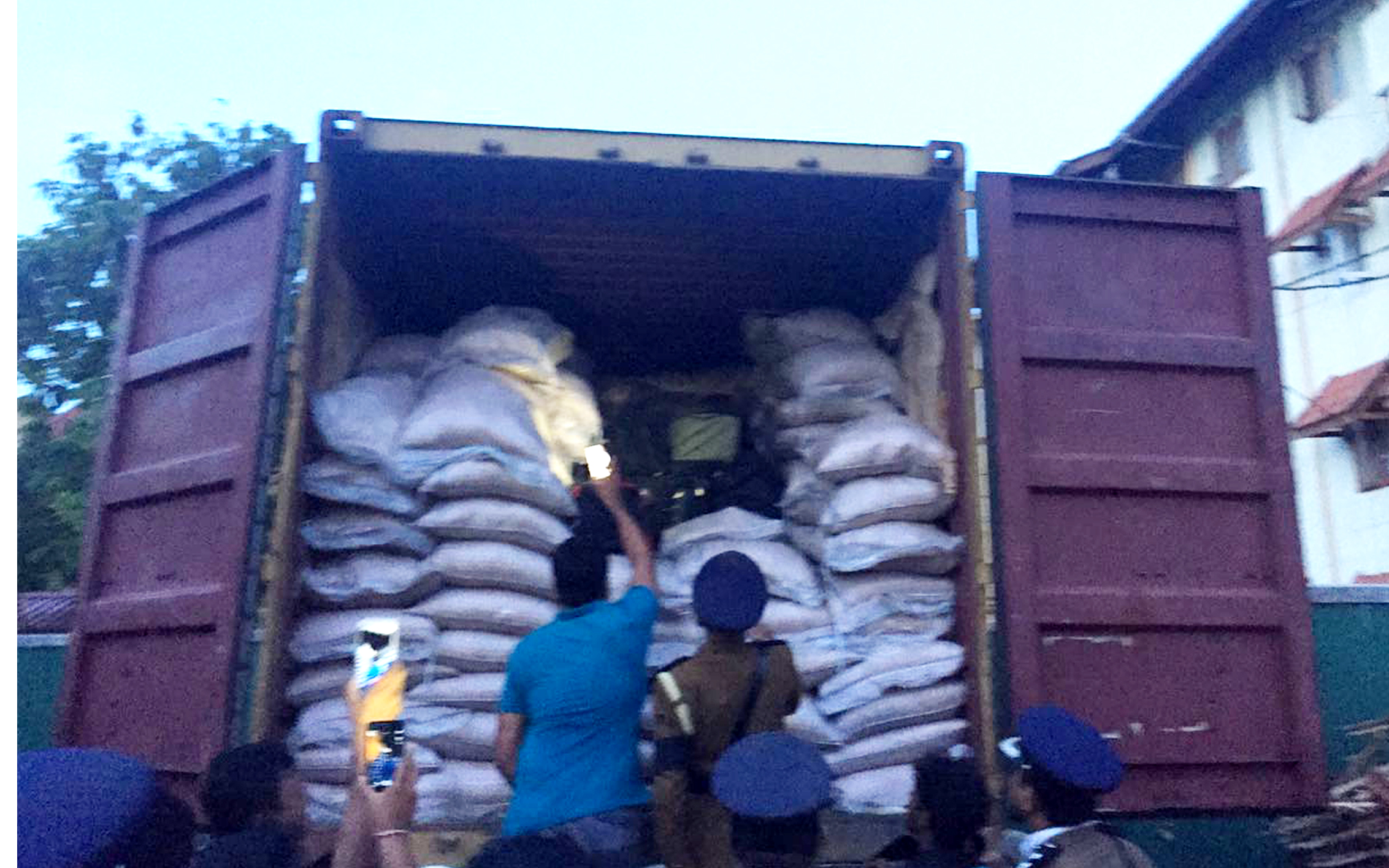 இரத்மலான சதொச களஞ்சியசாலைக்கு ஒருகொடவத்தையிலிருந்து ரஞ்சிதா பல்சஸ் நிறுவனத்தினால் கொண்டுவரப்பட்டிருந்த சீனியடங்கிய கொள்கலனை, இரத்மலான சதொச களஞ்சியசாலைக்கு கொண்டு வந்த பின்னர் களஞ்சியசாலையில் வைத்து அதனை இறக்குவதற்கு முன்னரே வழமையான நடைமுறையின் பிரகாரம் ஊழியர்கள் கொள்கலனைத் திறந்து பார்த்த போது வித்தியாசமான பொதிகள் இருந்ததைக் கண்டனர். அதன் பின்னர் பொலிசாருக்கு சதொச நிறுவனம் இது தொடர்பில் அறிவித்ததாக நிறுவனத்தின் தலைவர் டி.எம்.கே.பி. தென்னக்கோன் தெரிவித்தார்.