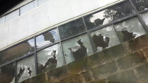 கண்டியில் தனியார் விடுதி ஒன்றில் நேற்று இடம்பெற்ற கூட்டம் ஒன்றின் மீதே இந்த தாக்குதல் இடம்பெற்றுள்ளது இதனால் தனியார் விடுதியின் கண்ணாடிகள் உடைந்துள்ளதாக தெரிவிக்கப்படுகிறது.