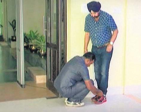 நிகழ்ச்சி முடிந்ததும் மீண்டும் வெளியில் வந்த ராச்பால், தனது ஷூவை காலில் அணிந்து கொண்டார். அப்போது, அவருடன் பாதுகாப்புக்கு வந்த போலீஸ்காரர் ஓடி சென்று, கீழே குனிந்து அமைச்சரின் சப்பாத்தின் லேஸ் கட்டி விட்டார். தனது சப்பாத்தின் லேஸ் கட்டிவிட சொல்லி அமைச்சரே உத்தரவிட்டதாகவும் கூறப்படுகிறது. இந்த காட்சியை அங்கிருந்த யாரோ ஒருவர் புகைப்படம் எடுத்து வெளியிட்டுவிட்டார்.