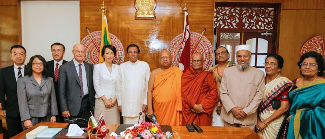 சமாதானத்திற்கான சர்வதேச சமய மாநாட்டின் பிரதிநிதிகள் குழு இன்று (21) முற்பகல் ஜனாதிபதியின் உத்தியோகபூர்வ இல்லத்தில் ஜனாதிபதி மைத்ரிபால சிறிசேன அவர்களை சந்தித்தனர். சகல இனங்களுக்கிடையேயும் சமாதானத்தையும் நல்லிணக்கத்தையும் கட்டியெழுப்புவதற்கு சகல சமயத் தலைவர்களினதும் உதவி அவசியமானது என ஜனாதிபதி இங்கு தெரிவித்தார்.