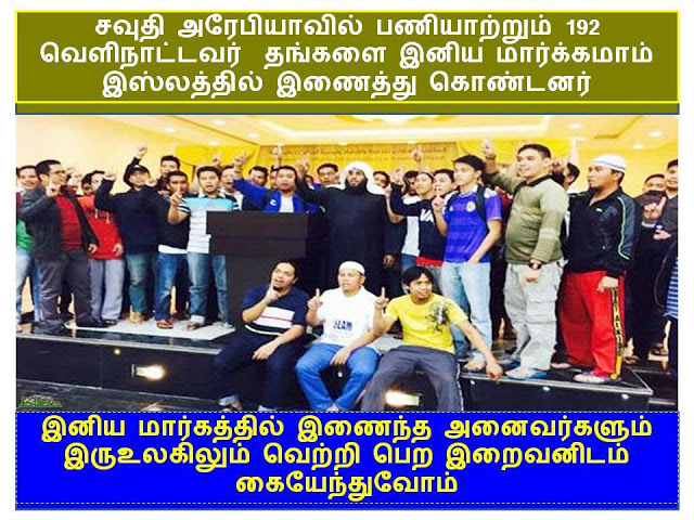 சவுதி அரேபியாவில் செயல் பட்டு வரும் பல .இஸ்லாமிய அழைப்பு மையங்களில் குறிப்பிட்ட ஒரு அழைப்பு மயத்தின் முயர்ச்சியினால் கடந்த ரஜப் மாதத்தில் மட்டும் 192 மாற்று மதத்தோர் தங்களை இனிய மார்கமாம் இஸ்லாத்தில் இணைத்து கொண்டனர்
