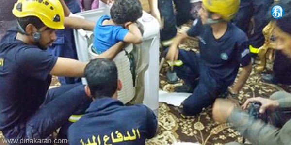 பெற்றோர்கள் வீட்டில் விளையாடும் தங்கள் பிள்ளைகள் மீது கவனம் கொள்வது அவசியம் என்பதை எத்தனையோ விபரீத சம்பவங்கள் உணர்த்தி உள்ளன. இந்நிலையில் சவுதி அரேபியாவில் உள்ள ஒரு நகரில் 3 வயது குழந்தை விளையாடி கொண்டிருந்தது. அப்போது அங்கிருந்த வாசிங் மெசின் மேல் ஏறி நின்று போது தவறி உள்ளே விழுந்து வெளியே வர முடியாதபடி சிக்கி கொண்டது.