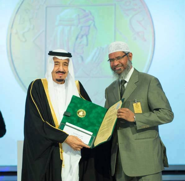 ரியாத்தில் இடம்பெற்ற கிங் பைசல் விருது வழங்கும் விழாவில் சவூதி மன்னர் சல்மான் இப்னு அப்துல் அஜிஸ் அவர்களினால் இந்தியாவை சேர்ந்த DR ஜாகிர் நாயக்கிற்கு விருது வழங்கி கெளரவிக்கப்பட்டார்!