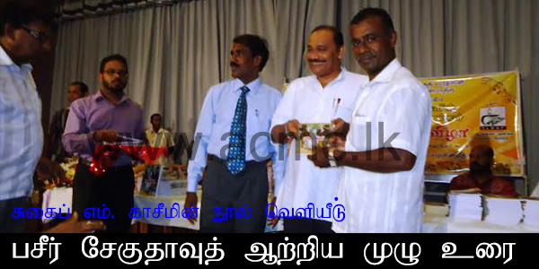 ஸ்ரீலங்கா முஸ்லீம் காங்கிரசின் தவிசாளர் பசீர் சேகுதாவூத் (பா.உ) அண்மையில் கொழும்பில நடைபெற்ற சுகைப் எம். காசீமின் நூல் வெளியீட்டின்போது பசீர் சேகுதாவுத் ஆற்றிய முழு உரை