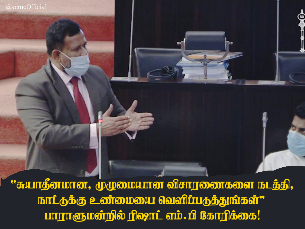 இந்த நாட்டிலே சுமார் ஒன்றரை வருடங்களாக அரசியல்வாதிகளிலே ஆகக் கூடிய துன்பத்தை அனுபவித்தவனாக நானே இருக்கின்றேன். ஆகக் கூடுதலான வேதனைகளை அனுபவித்த குடும்பமாக எனது குடும்பம் மாறியுள்ளது. பெருமானாரின் வழிமுறைகளை நாங்கள் பின்பற்றுவதனாலேயே, இவ்வாறு உச்ச துன்பங்களை தாங்கும் சக்தியை இறைவன் தந்திருக்கின்றான். இந்த விடயத்தில் நாங்கள் பூரண ஒத்துழைப்புக்களை வழங்கி வருகின்றோம். இனியும் வழங்குவோம். சுயாதீன விசாரணையின் மூலம் இந்த நாட்டுக்கு உண்மையை வெளிப்படுத்துங்கள்” என்று கூறினார்.