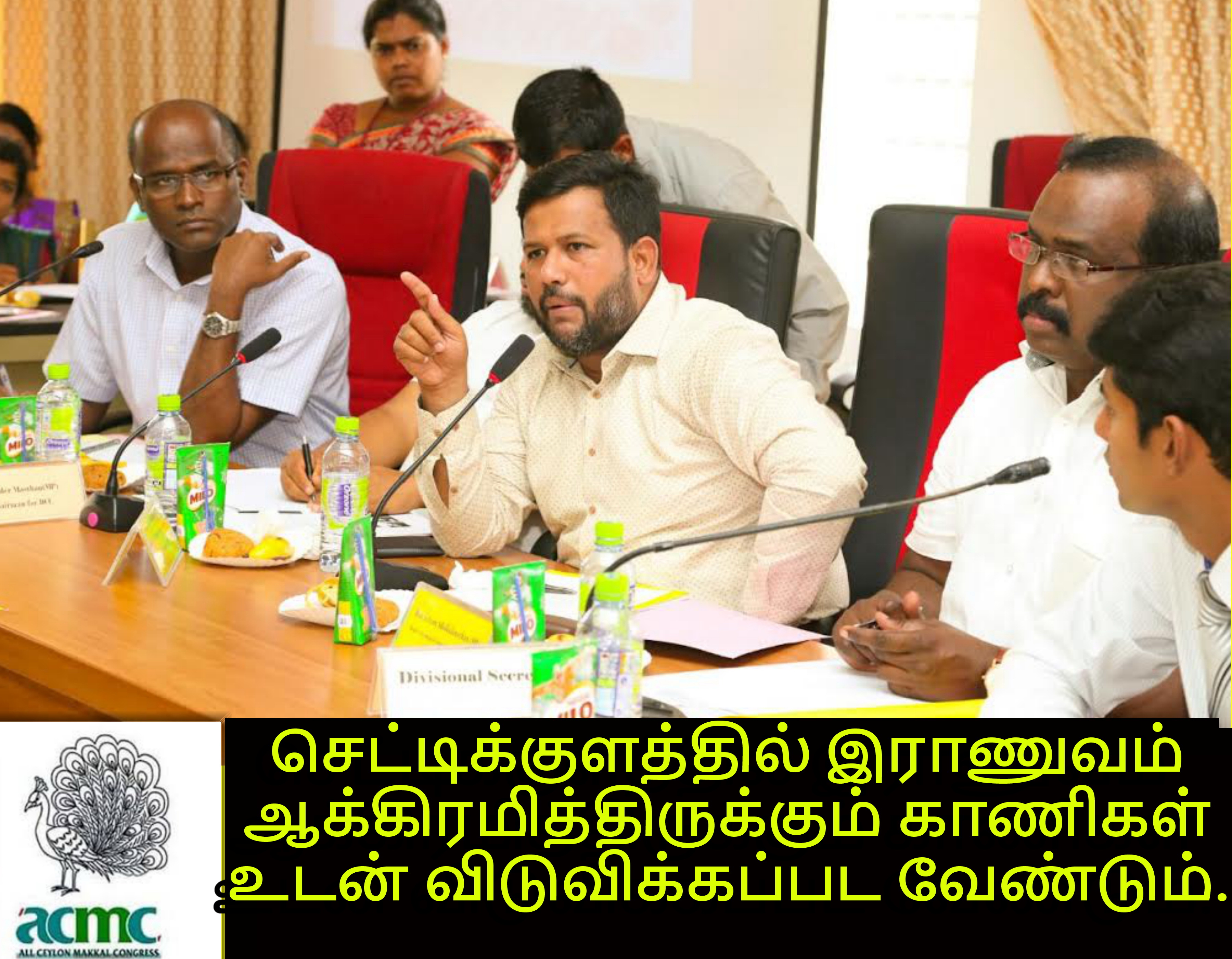 இராணுவத்தினரால் யுத்த காலத்தில் ஆக்கிரமிக்கபட்டு இன்னும் விடுவிக்கப்படாதிருக்கும் செட்டிகுளப் பிரதேச எல்லைக்குட்பட்ட மக்களின் குடியிருப்பு காணிகளையும், வயற் காணிகளையும் இராணுவம் அவசரமாக விடுவிக்க வேண்டுமெனவும் அது தொடர்பில் உரிய அதிகாரிகளுடன் பேச்சுநடத்தி ஆக்கபூர்வமான நடவடிக்கையை எடுப்பதெனவும் பிரதேச ஒருங்கிணைப்புக் கூட்டத்தில் இன்று (13.02.2017) ஏகமனதாக முடிவெடுக்கப்பட்டது.