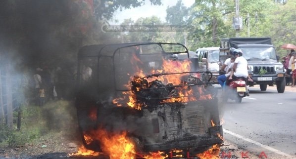 முச்சக்கர வண்டி முற்று முழுதாக தீப்பற்றிக்கொண்டதாகத் தெரிவிக்கப்படுகிறது.
