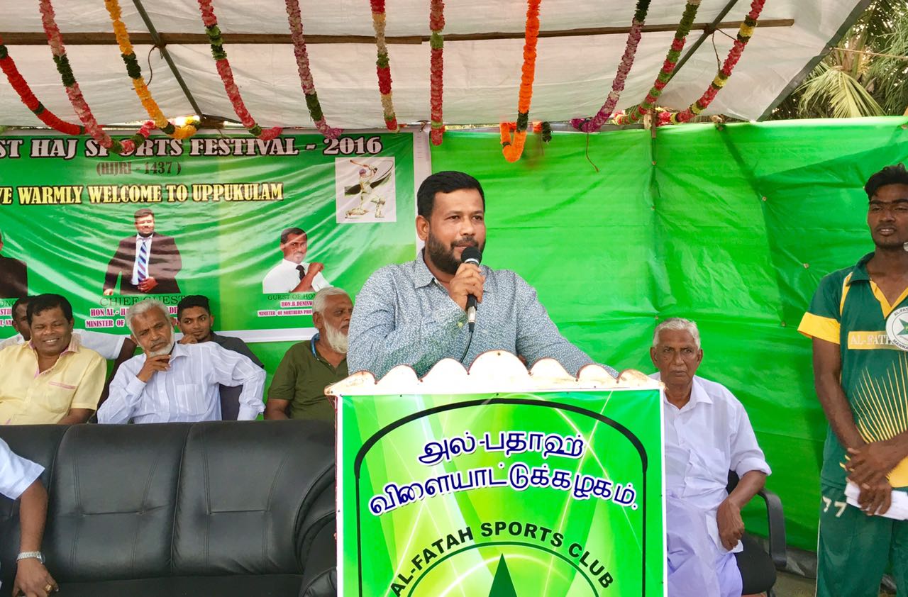 மன்னார் உப்புக்குளத்தில் அல்பதாஹ் விளையாட்டுக்கழக ஏற்பாட்டில் இடம்பெற்ற ஹஜ் விளையாட்டு விழாவில் பிரதம அதிதியாக பங்கேற்ற அமைச்சர் றிஸாட் பதியுதீன் போட்டியில் வெற்றி பெற்றவர்களுக்கு பரிசில்களையும் வழங்கினார் இந்த விழாவில் விசேட அதிதியாக வட மாகாண அமைச்சர் டெனீஸ்வரனும் பங்கேற்று உரையாற்றினார்.