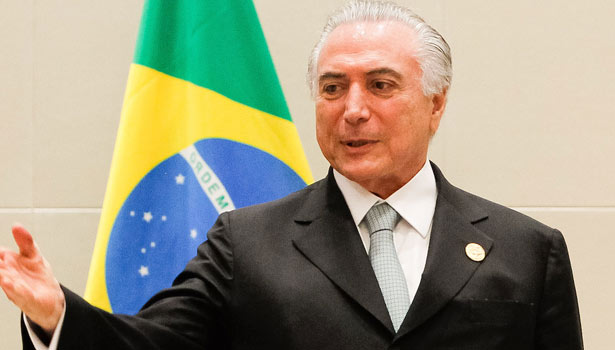 பிரேசில் அதிபராக இருந்த டில்மா ரூசோப் ஊழல் புகார் காரணமாக பாராளுமன்றத்தின் மூலம் பதவிநீக்கம் செய்யப்பட்டார். அவருக்கு பதிலாக மைக்கேல் டெமர் புதிய அதிபராக கடந்த வாரம் பதவியேற்றார்.
