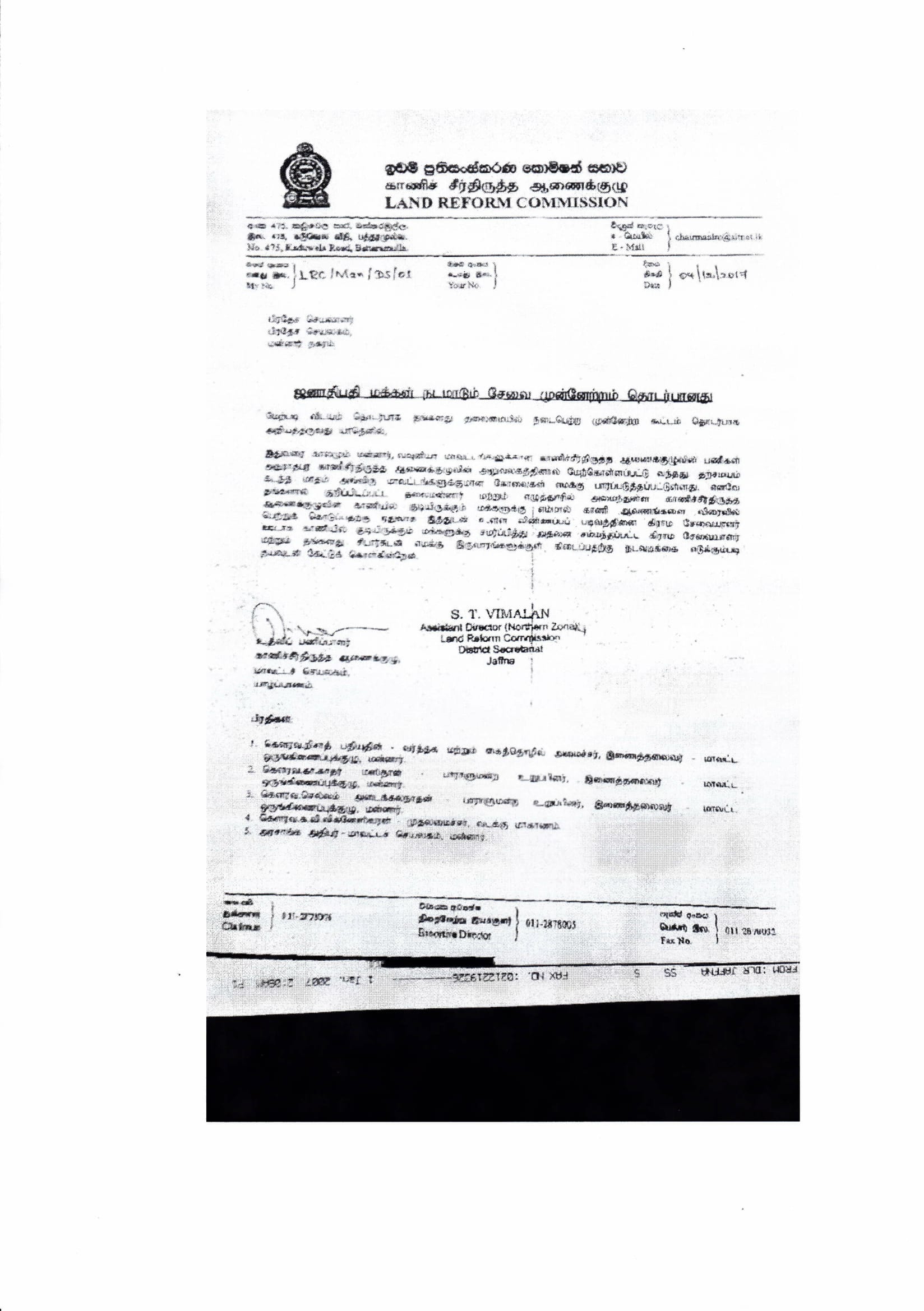 மன்னார், வவுனியா மாவட்டங்களுக்கான காணிச் சீர்திருத்த ஆணைக்குழுவிற்கான பணிகள், அநுராதாபுர காணிச் சீர்திருத்த ஆணைக்குழுவின் அலுவலகத்தினால் இற்றைவரை மேற்கொள்ளப்பட்டு வந்தன. கடந்த மாதம் தொடக்கம், அந்த இரண்டு மாவட்டங்களுக்குமான கோவைகள் யாழ்ப்பாணம் காணிச் சீர்திருத்த ஆணைக்குழுவுக்கு பாரப்படுத்தப்பட்டிருந்ததை அடுத்தே, காணிச் சீர்திருத்த ஆணைக்குழுவுக்குச் சொந்தமான காணியில் குடியிருக்கும் மக்களுக்கு உரிமைப் பத்திரங்களை வழங்க நடவடிக்கை எடுக்கப்பட்டுள்ளது.