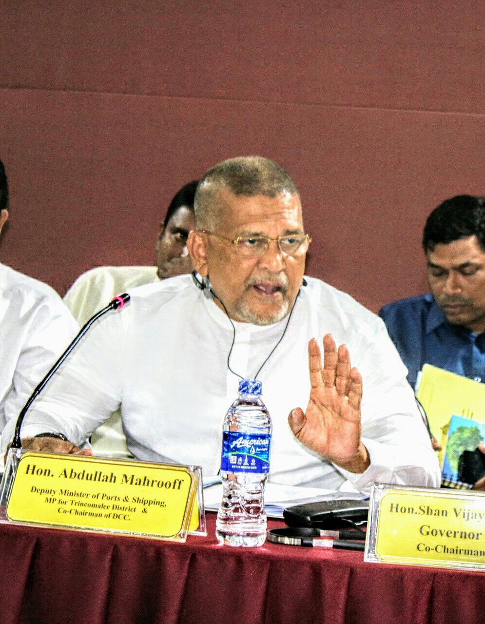 இதில் கிழக்கு மாகாண ஆளுனர் ஷான்விஜயலால் டீ சில்வா, திருகோணமலை மாவட்ட நாடாளுமன்ற உறுப்பினர்களான இரா.சம்மந்தன், சுசந்த புஞ்சிநிலமே, கே.துரைரட்ணசிங்கம்,சன்டித் சமரசிங்க ,திருகோணமலைமாவட்ட அரசாங்க அதிபர் என்.ஏ.ஏ.புஷ்பகுமாரஉட்பட அரச திணைக்கள தலைவர்கள், முப்படைகளின் உயரதிகாரிகள் என பலரும் பங்கேற்ற கூட்டத்தின் போதே இவ்வாறு உயரதிகாரிகளிடம் பணிப்புரை விடுத்தார்