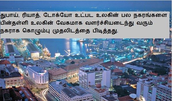 இலங்கையின் தலைநகர் கொழும்பு, உலகின் வேகமாக வளர்ச்சியடைந்து வரும் நகரமாக இடம்பிடித்துள்ளது.